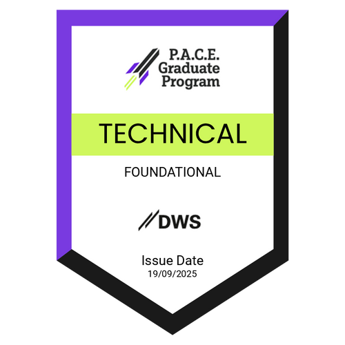 Awarded to graduates who have successfully completed Phase 2 of the P.A.C.E Graduate Progamme in-person induction technical training for the Corporate Functions stream. This badge recognises foundational understanding of asset management principles, financial markets, and portfolio management concepts, enabling participants to support investment-related activities and collaborate effectively across the business.